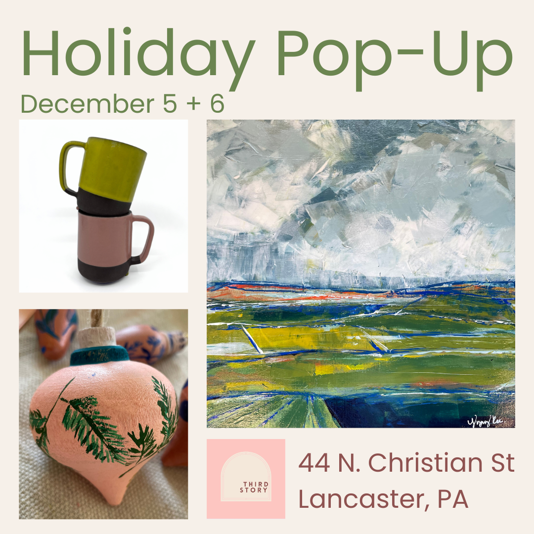 Leah Fox and Stephanie Gibson are two artists who met years ago through a love of jewelry making. Both began painting with intention in 2020. Their first joint foray was in 2021, when they mounted a tiny pop-up art fair in Stephanie’s yard. In July of 2023, they began dreaming of creating an inspiring space where artists could come together and build a community of support.